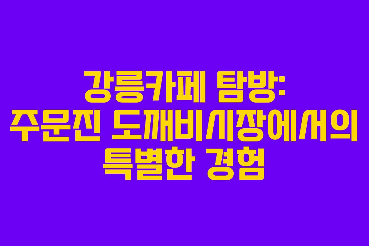 강릉카페 탐방은 단순한 커피 한 잔을 넘어, 지역의 문화와 자연을 함께 느낄 수 있는 특별한 경험이다. 도깨비시장을 중심으로 한 다양한 카페들은 각기 다른 매력으로 방문객들을 맞이하고 있다. 이곳에서의 시간을 통해 강릉의 진정한 매력을 발견하고, 잊지 못할 순간들을 만들어 보길 바란다.