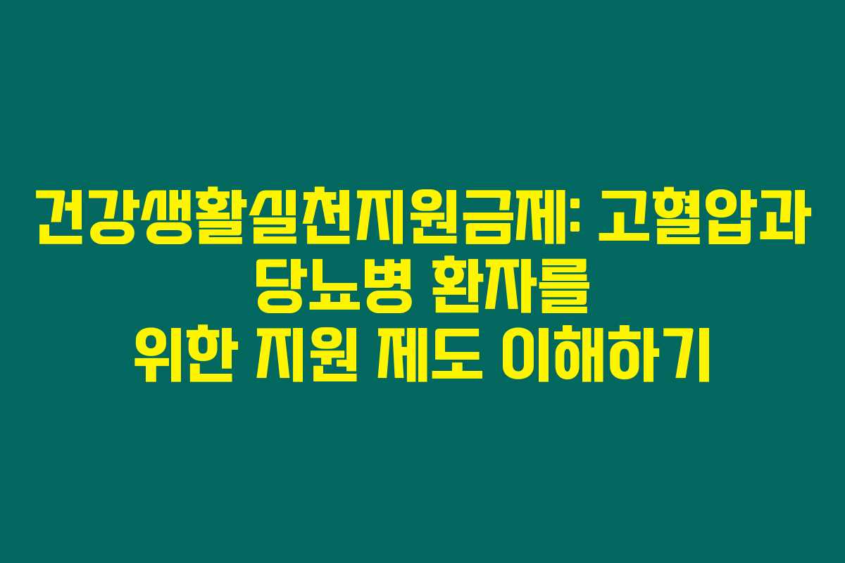 제가 직접 리서치한 바로는, 최근에 고혈압이나 당뇨병을 앓고 계신 분들을 위한 건강생활실천지원금제가 보편적인 관심을 받고 있습니다. 이 제도는 건강을 실천하는 국민들에게 포인트를 제공해 주며, 특정 지역에서 대상을 선정해 운영되고 있어요. 아래를 읽어보시면, 이 제도에 대한 보다 분명한 이해와 신청 방법을 알 수 있습니다.
