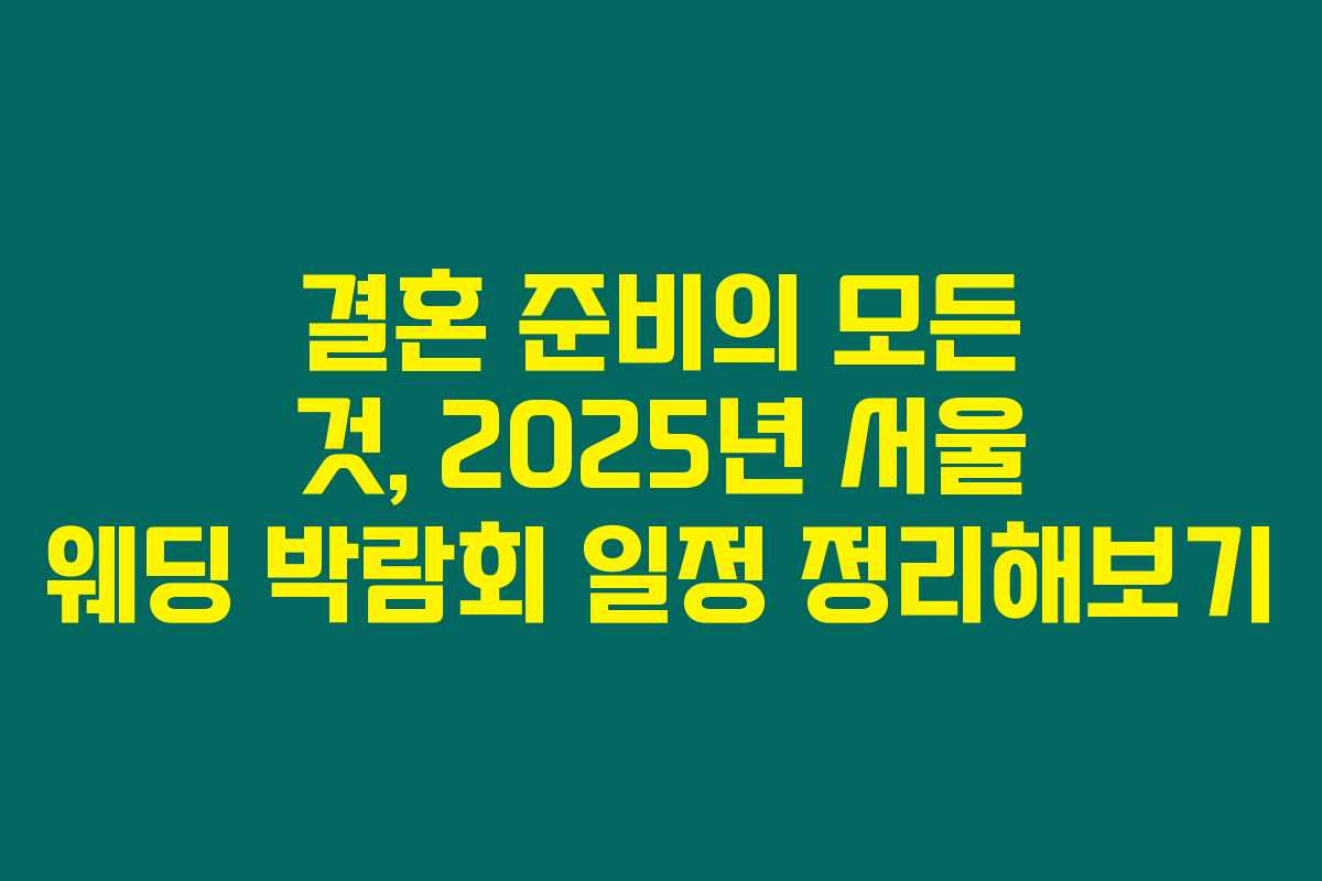 2025년 동안 서울에서 열리는 웨딩 박람회는 어떤 일정으로 진행되는지 알아보아요. 결혼 준비에 필수적인 정보들로 가득한 이 글을 통해 결혼 준비를 훨씬 수월하게 만들어 보세요.
