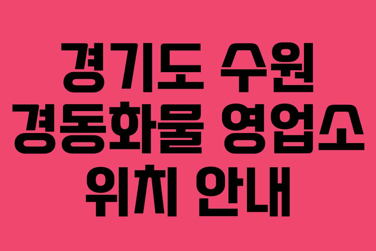 경동화물 영업소는 수원시 내 여러 곳에 위치하고 있으며, 위의 주소를 참고하여 방문하시면 됩니다.