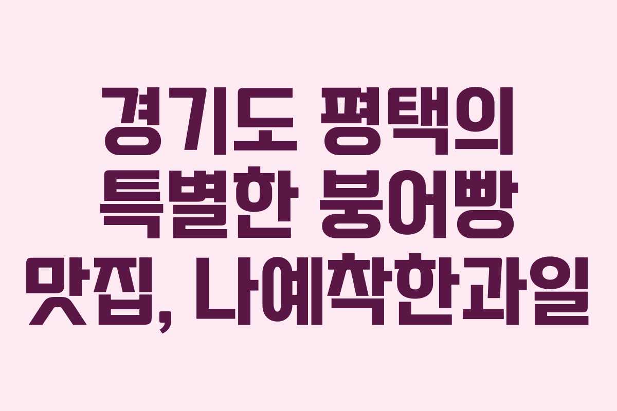 붕어빵은 많은 사람들에게 사랑받는 간식 중 하나입니다. 특히, 경기도 평택에 위치한 나예착한과일은 과일 가게에서 판매하는 특별한 붕어빵으로 유명합니다. 이곳은 다양한 종류의 붕어빵을 제공하며, 그 맛과 퀄리티가 뛰어난 것으로 알려져 있습니다.