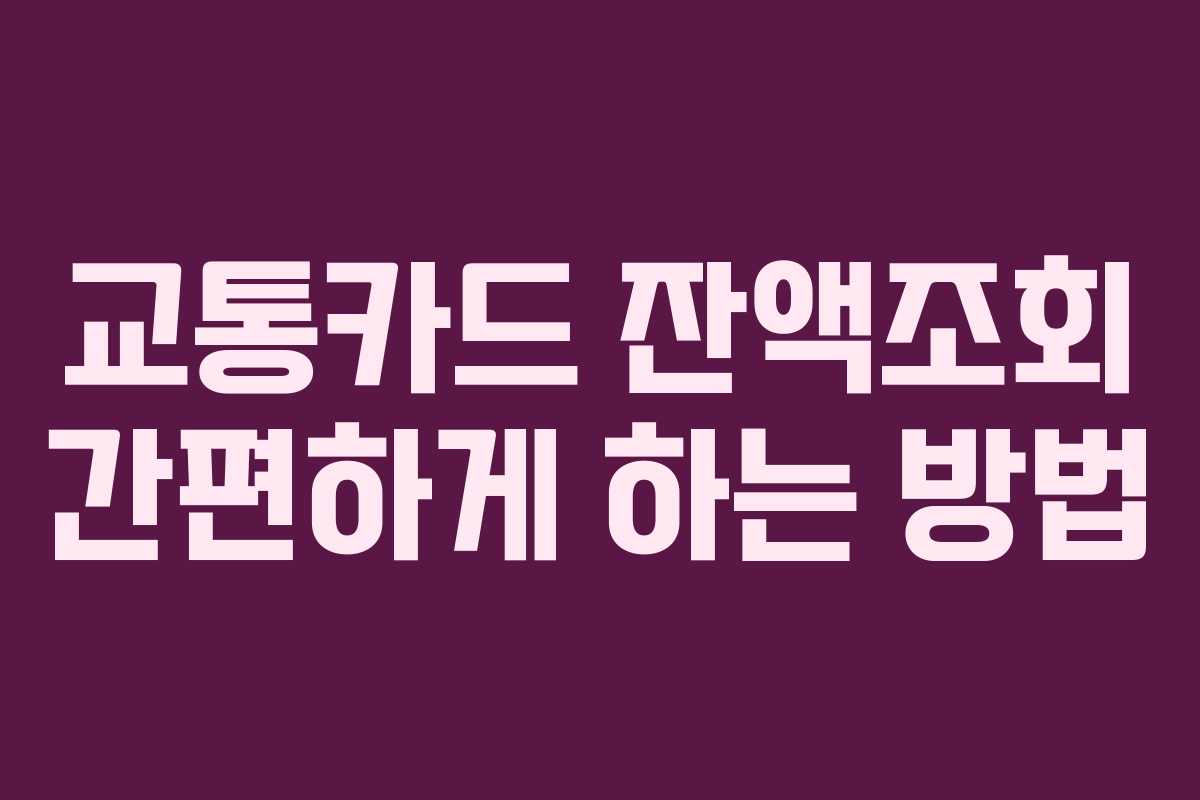 교통카드는 일상에서 이동 수단을 이용할 때 필수적으로 사용되는 도구입니다. 잔액이 부족할 경우 당황함을 방지하기 위해 자주 잔액을 확인하는 습관이 필요합니다. 이 글에서는 교통카드 잔액조회 방법을 소개합니다.