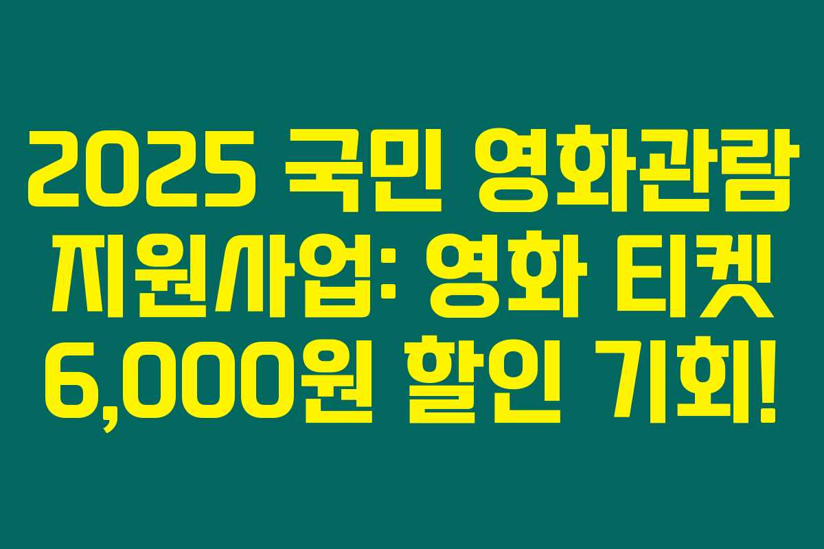 영화 관람이 취미인 사람이라면 2025년의 “국민 영화관람 지원사업” 소식을 놓치면 후회할 거예요. 모든 영화에 적용되는 최대 6,000원 할인 혜택을 통해 여가 생활을 더욱 풍성하게 즐길 수 있는 기회를 제공합니다. 아래를 읽어보시면 이 지원사업의 핵심 내용을 얻고 새로운 문화 경험을 할 준비를 할 수 있어요.