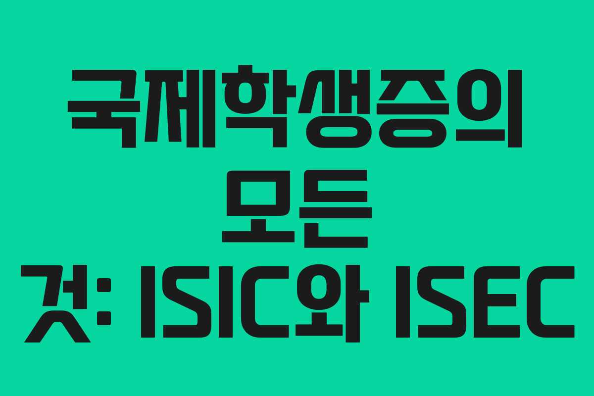 ISIC는 공인된 교육기관에서 주 15시간 이상 수업을 듣는 학생들이 신청할 수 있는 카드입니다. 이 카드는 114개국에서 유효하며, 한국국제학생교류회에서 발급합니다. ISIC를 통해 다양한 제휴 혜택을 이용할 수 있습니다.