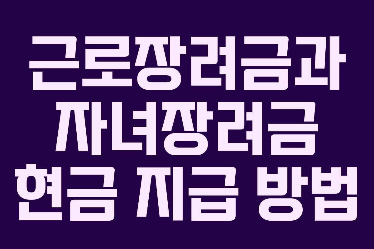 근로장려금과 자녀장려금을 현금으로 지급받는 방법에 대해 알아보겠습니다. 특히 압류 등의 이유로 계좌로 지급받기 어려운 경우와 계좌 변경 방법에 대해 자세히 설명합니다.