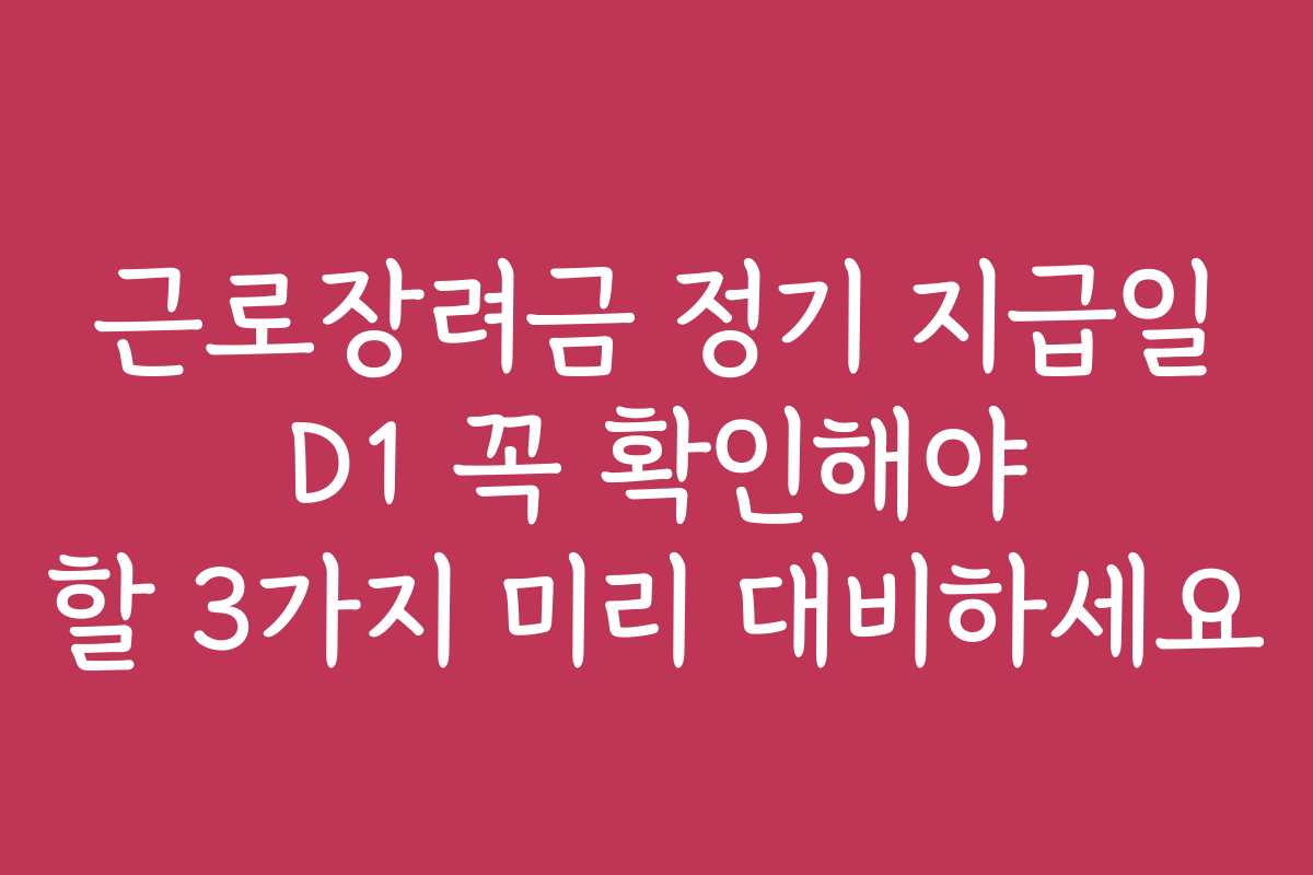 근로장려금 지급일로 고민이신가요? 많은 분들이 근로장려금 지급일에 대한 정보를 알고 싶어 합니다. 이 글에서 ‘근로장려금 정기 지급일 D1 꼭 확인해야 할 3가지’에 대한 실질적인 해결책을 제시하겠습니다.
