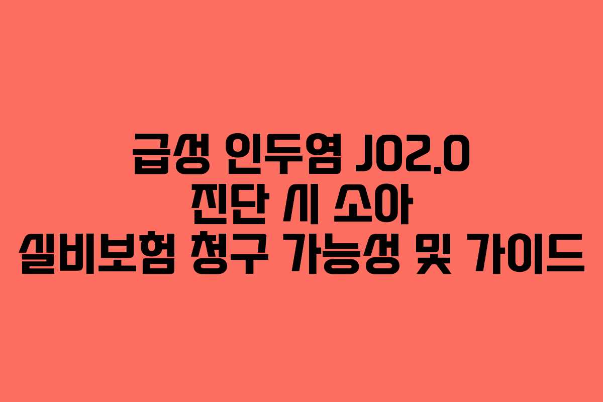 J02.0은 급성 인두염을 나타내며, 소아에서 흔히 발생하는 질환이다. 진료 및 약 처방이 있을 경우 실비보험 청구가 가능하다. 청구 시 필요한 서류를 준비하고, 모바일 청구를 통해 빠르게 처리를 받을 수 있다. 이러한 정보는 보험금 청구 가능 여부에 따라 달라질 수 있으므로, 항상 보험사의 약관 및 고객센터를 통해 확인하는 것이 필요하다.