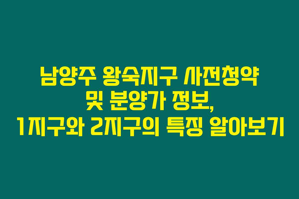 남양주 왕숙지구는 3기 신도시 중에서도 큰 규모로 개발되고 있으며, 많은 이들의 주목을 받고 있답니다. 오늘은 왕숙지구의 1지구와 2지구에 대한 자세한 정보와 사전청약 일정, 분양가, 그리고 지역 우선공급 기준까지 알아보도록 할게요.