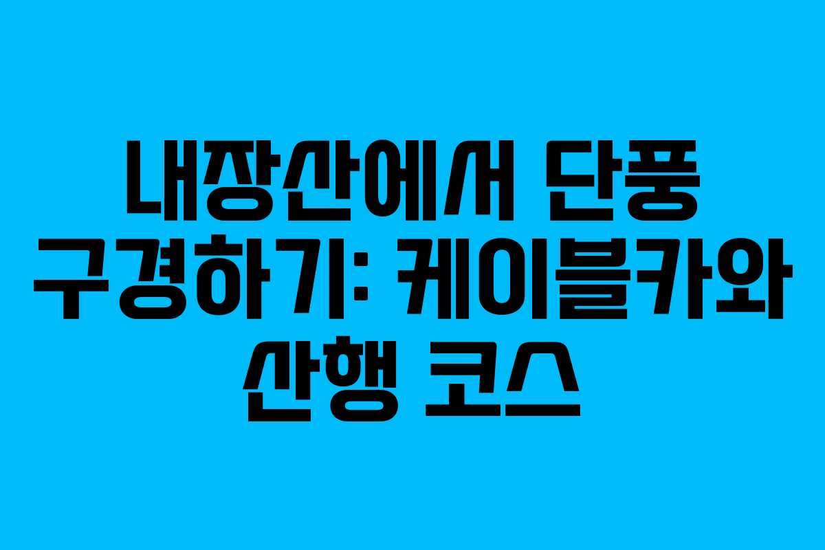 내장산은 한국에서 단풍 구경으로 유명한 산 중 하나입니다. 이번 포스팅에서는 내장산의 케이블카 예약 방법, 요금, 운행 시간, 주차장 정보와 함께 초보자부터 고급자까지 추천하는 산행 코스도 소개하겠습니다. 그리고 등산 후 방문할 만한 맛집도 함께 안내해 드립니다.
