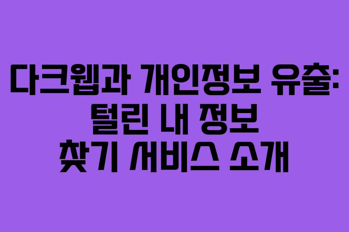 개인정보보호위원회에서는 다크웹에서 유출된 개인정보를 조회할 수 있는 ‘털린 내 정보 찾기’ 서비스를 제공하고 있습니다. 이 서비스는 사용자가 자신의 계정정보가 다크웹에 유출되었는지 확인할 수 있는 기능을 갖추고 있습니다.