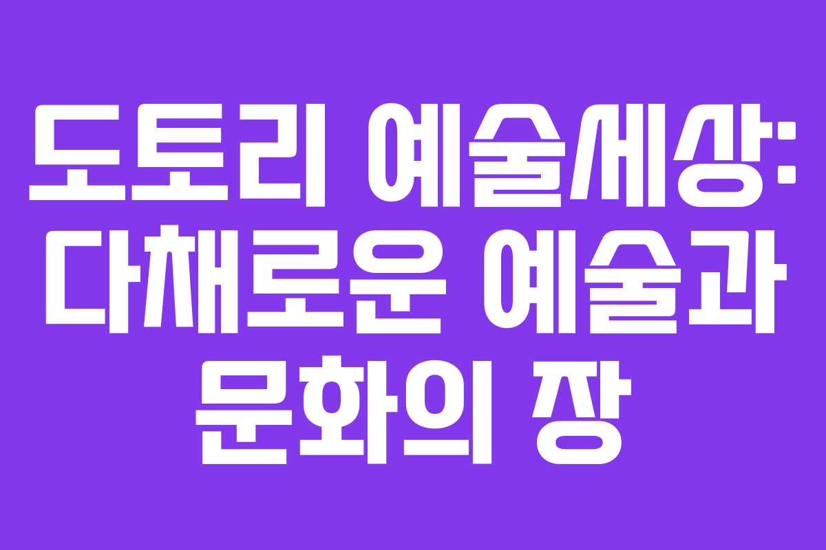 도토리 예술세상은 다양한 예술과 문화 이벤트를 소개하는 플랫폼으로, 여행과 맛집, 공연, 행사 등 폭넓은 주제를 다룹니다. 본 블로그에서는 최신 소식과 유용한 정보를 통해 독자들에게 다양한 경험을 제공합니다.