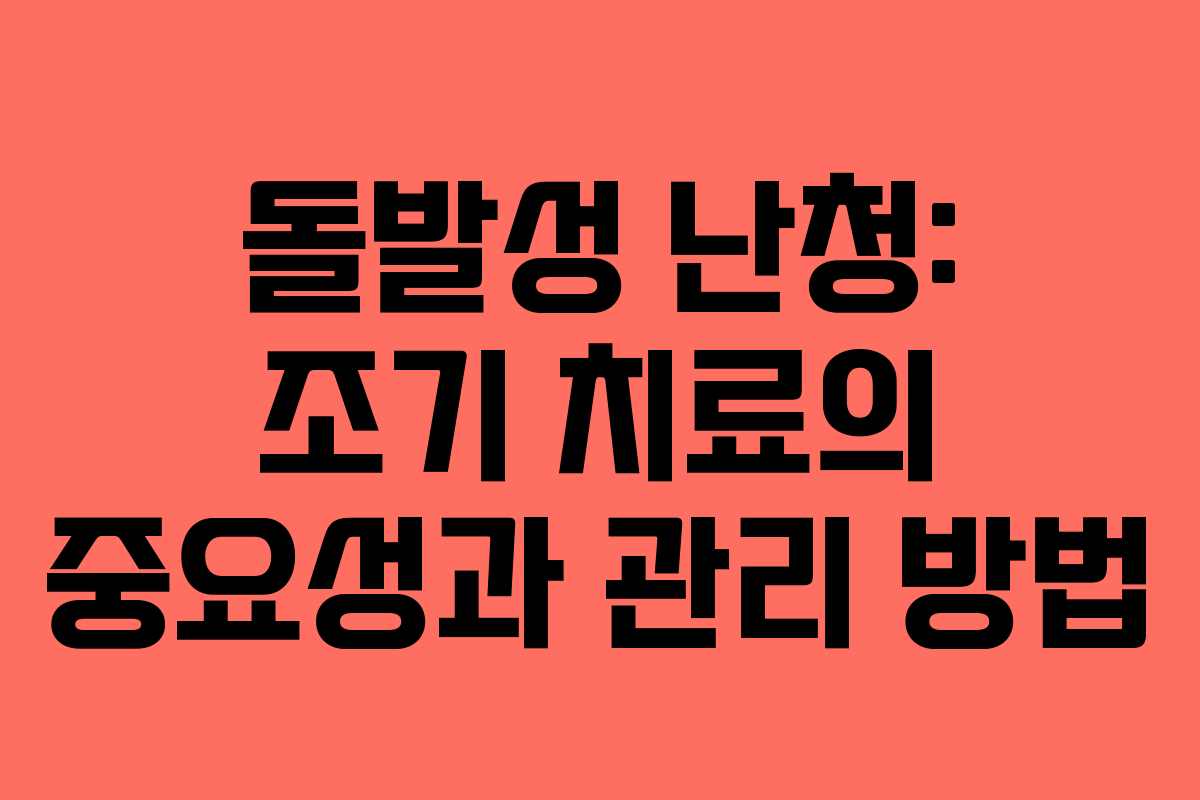 최대한 빠르게, 72시간 이내에 치료를 시작하는 것이 청력 회복에 매우 중요합니다.