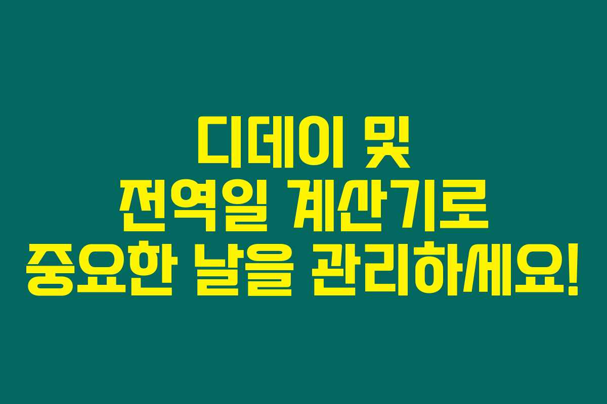 날짜를 쉽게 관리하고 중요한 순간을 잊지 않도록 도와주는 디데이 및 전역일 계산기에 대한 정보를 공유해 드렸어요. 이제 더 이상 중요한 날을 잊지 마세요!
