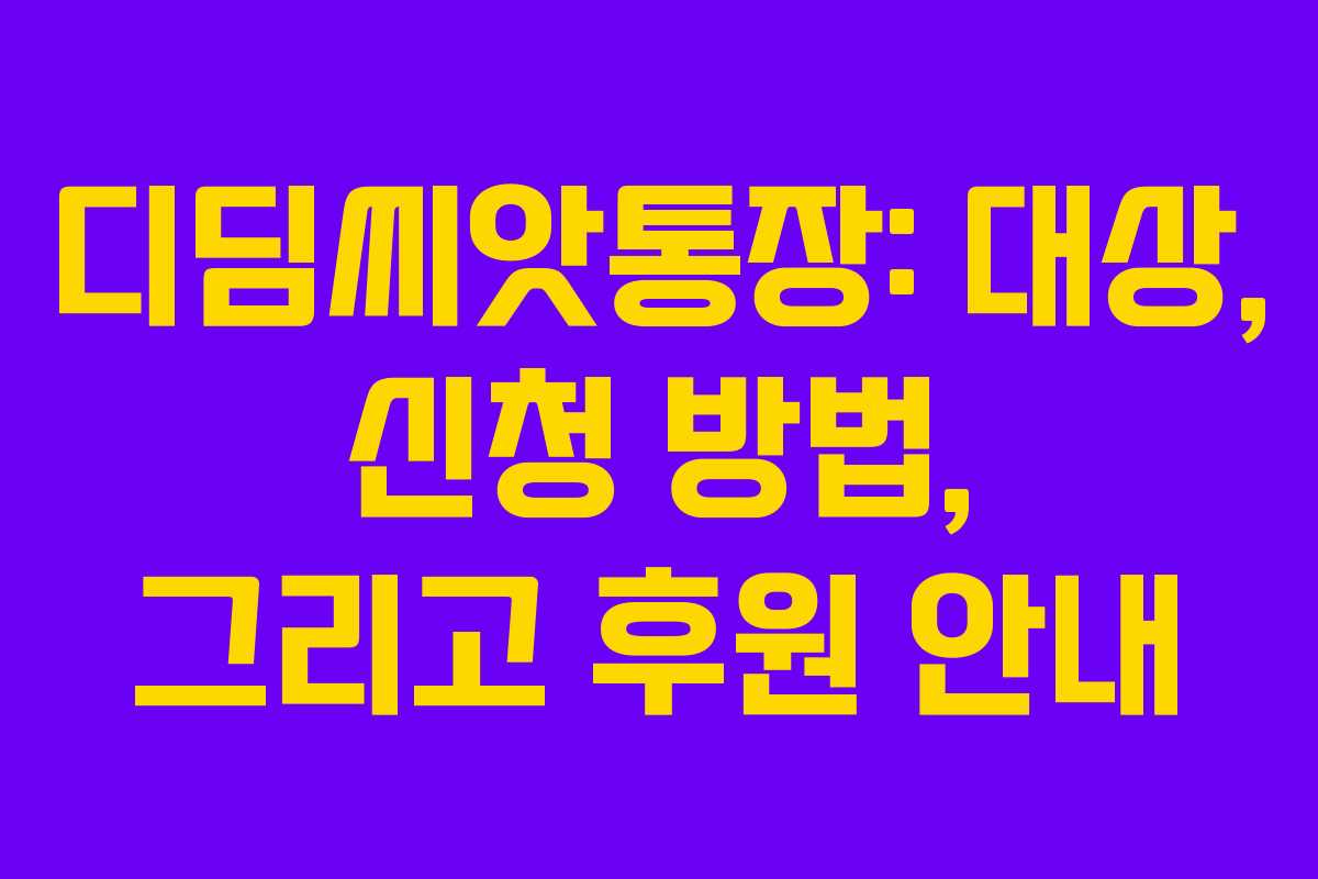 디딤씨앗통장은 취약계층 아동의 자립을 돕기 위해 정부에서 운영하는 아동자산형성 지원사업입니다. 이 글에서는 디딤씨앗통장의 대상, 신청 방법, 후원 방식에 대해 자세히 알아보겠습니다.
