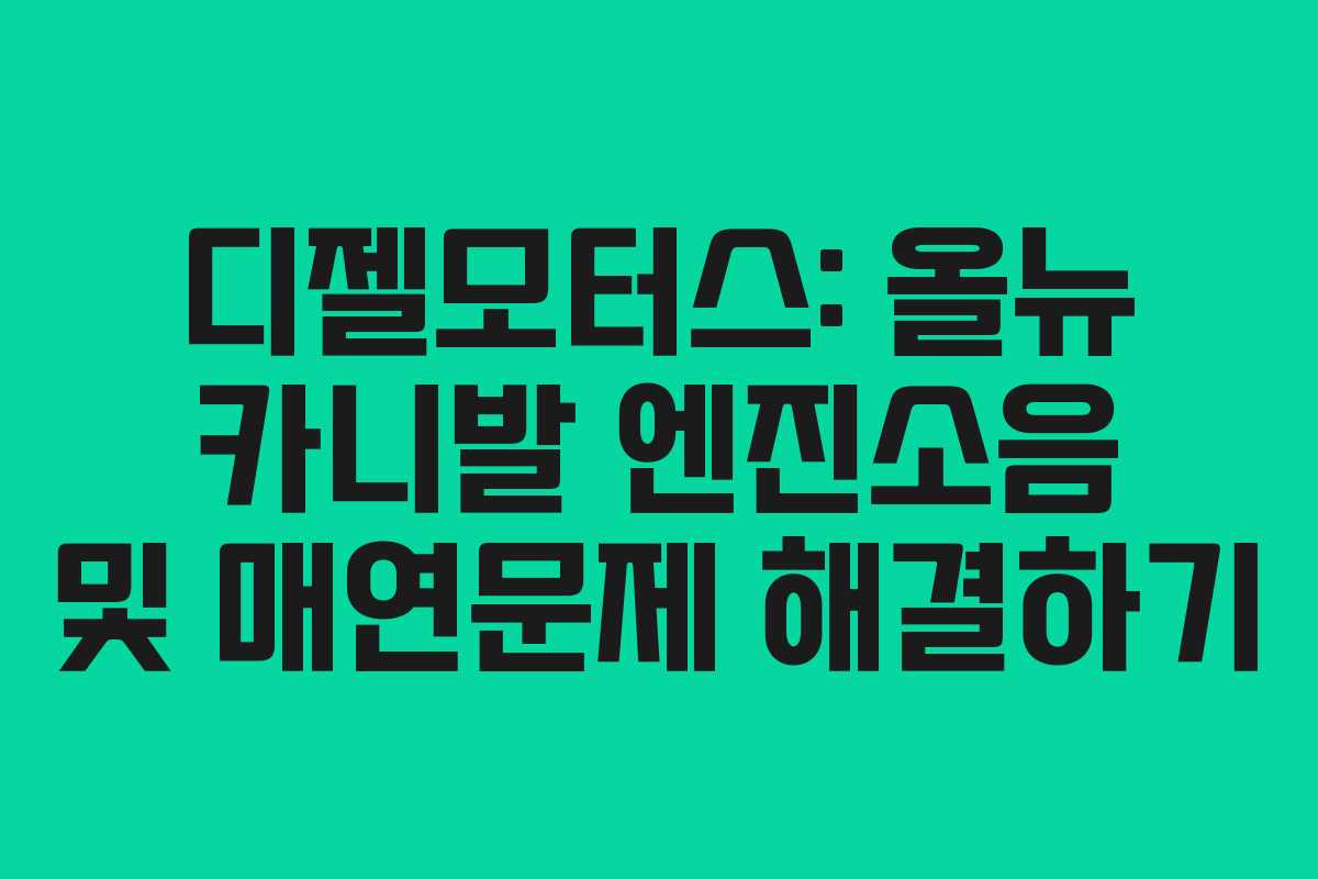 2026년 기준으로 디젤 차량의 엔진 소음 및 매연 문제는 많은 운전자들에게 큰 고민이 되고 있습니다. 특히 올뉴 카니발과 같은 인기 모델에서는 이러한 문제가 더욱 두드러지곤 하죠. 디젤모터스에서는 이러한 문제를 어떻게 해결하는지에 대해 자세히 알아보겠습니다.