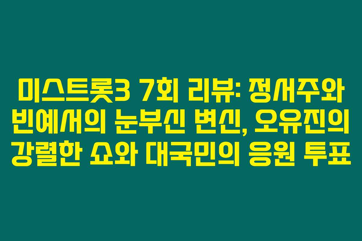 미스트롯3 7회 리뷰: 정서주와 빈예서의 눈부신 변신, 오유진의 강렬한 쇼와 대국민의 응원 투표