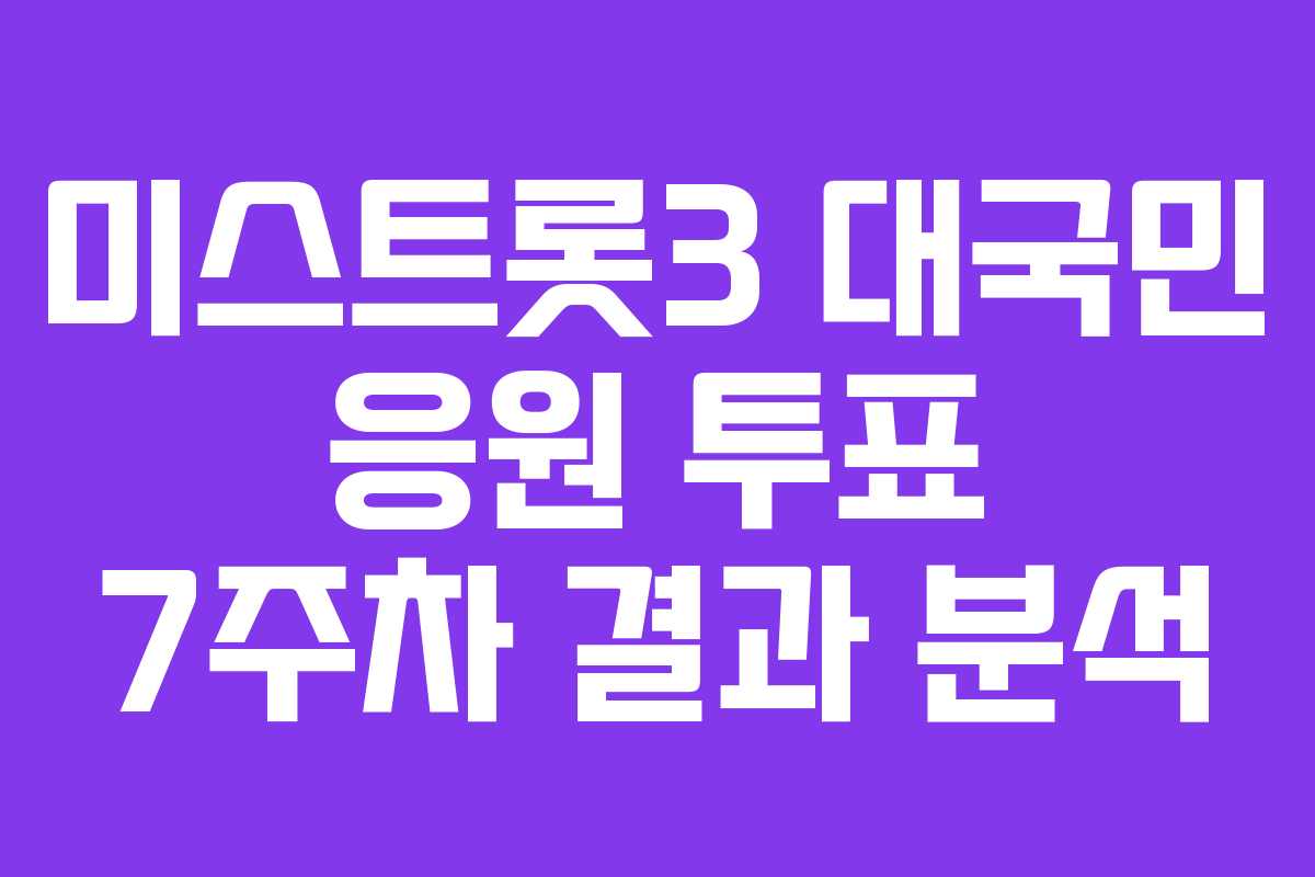 미스트롯3의 10회 방송에서는 결승 진출을 위한 최정예 14인의 대결이 펼쳐졌습니다. 특히 이번 방송에서는 7주차 대국민 응원 투표 결과가 발표되어 많은 관심이 쏠리고 있습니다. 지난 6주차 투표 결과에서 빈예서 참가자가 4위로 하락하며 주목을 받았는데, 이번 7주차 결과에서 어떤 변화가 있었는지 살펴보겠습니다.