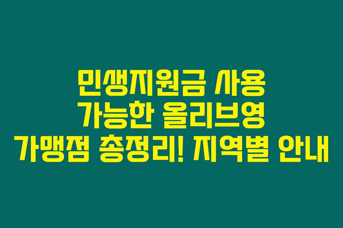 민생지원금으로 올리브영에서 구매를 고려하고 계신가요? 그러면 꼭 확인해야 할 점이 있습니다. 올리브영 매장 중 민생지원금을 사용할 수 있는 곳은 한정적이라는 사실, 알고 계셨나요? 아래 정보를 통해 지역별 올리브영 가맹점 목록과 함께 유용한 팁을 확인해 보세요.