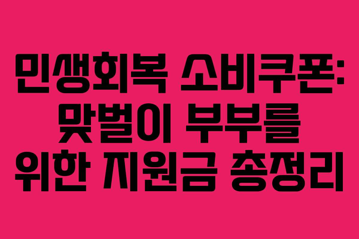 2025년 7월 21일부터 시행된 민생회복 소비쿠폰은 다양한 가구 형태를 지원하는 정부 정책으로, 특히 맞벌이 부부에게 유용한 혜택을 제공합니다. 본 글에서는 맞벌이 부부의 기준, 지급 금액, 신청 방법 등을 상세히 안내하겠습니다.