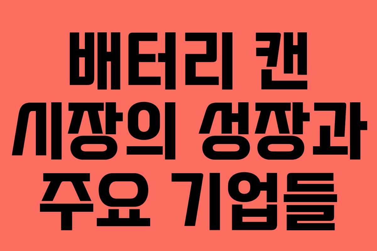 최근 2차전지 셀 기업들의 증설 소식이 이어지며 배터리 캔 수요 증가가 예상되고 있습니다. 이에 따라 배터리 캔 관련 사업을 운영하는 주요 기업들에 대해 살펴보겠습니다.