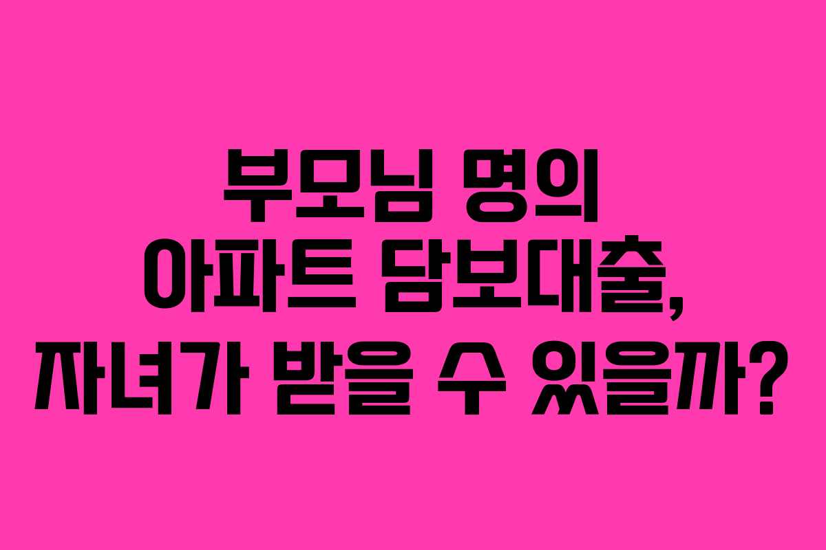 부모님 명의 아파트 담보대출, 자녀가 받을 수 있을까?