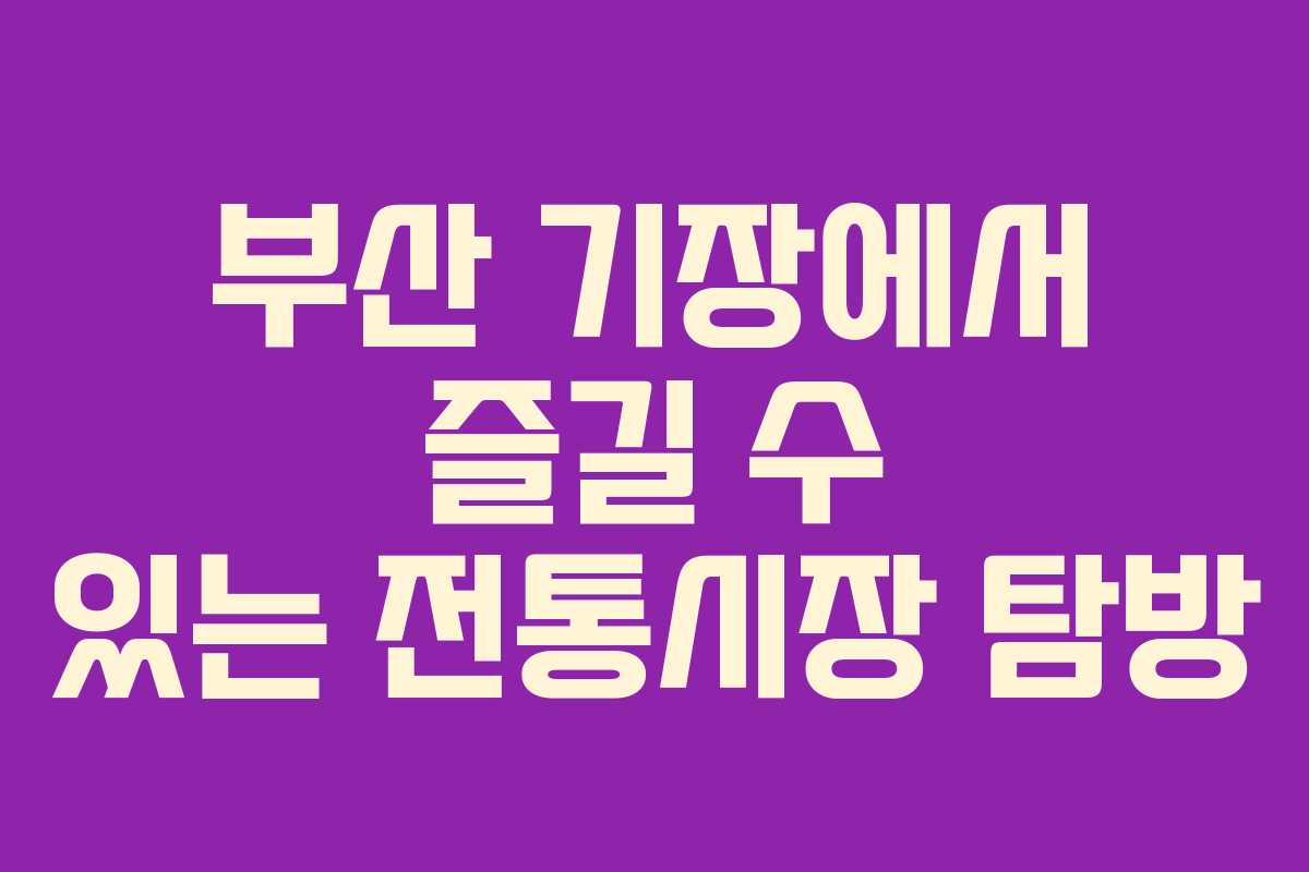 부산 기장은 해안가에 위치한 독특한 매력을 지닌 지역으로, 그중에서도 전통시장은 현지의 문화와 생활을 생생하게 경험할 수 있는 장소입니다. 제가 직접 기장에 있는 전통시장을 탐방하면서 느꼈던 점과 주요 시장에 대해 소개해드리겠습니다.
