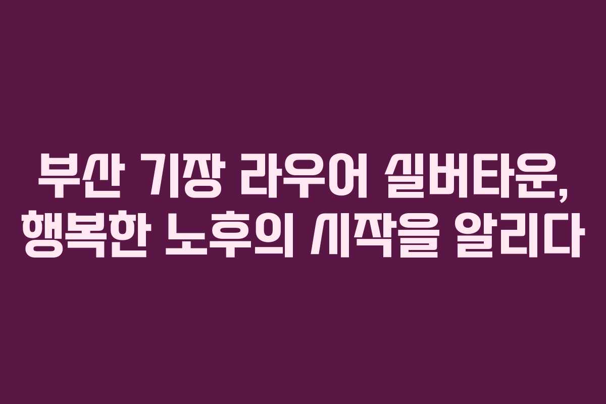 부산 기장에 위치한 라우어 실버타운은 이제 단순한 노인을 위한 주거 공간이 아니라, 인생의 황금기를 더욱 빛나게 만들어주는 프리미엄 주거 문화로 자리 잡았다. 여유로운 바다 풍경과 편리한 도심 환경을 동시에 누리고 싶은 시니어들에게 라우어는 최고의 선택이 될 것이다. 이곳에서의 삶은 단순한 은퇴 생활이 아닌, 활기차고 건강한 노후를 지향하는 모든 이들에게 행복한 경험을 선사할 것이다.