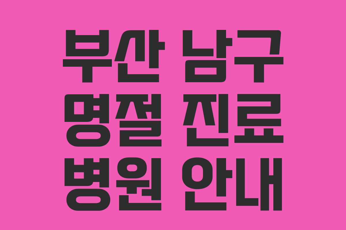 부산 남구에서 명절 기간 동안 운영되는 병원은 다음과 같습니다: