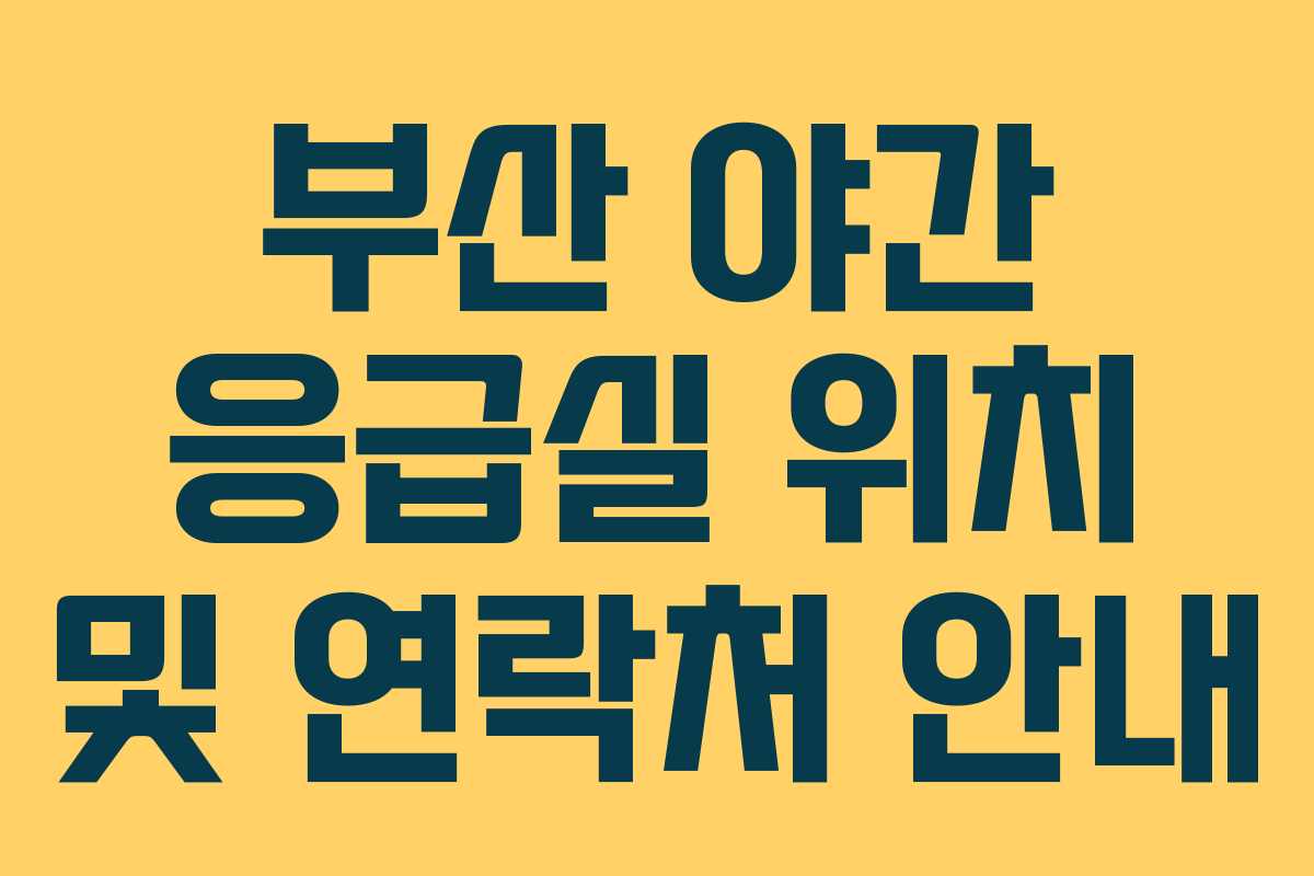 부산에서 야간에 응급 상황에 처했을 때, 가까운 응급실의 위치를 알고 있으면 큰 도움이 됩니다. 부산광역시에는 다양한 응급실이 운영되고 있으며, 이 글에서는 주요 응급실의 위치와 연락처를 정리하였습니다.