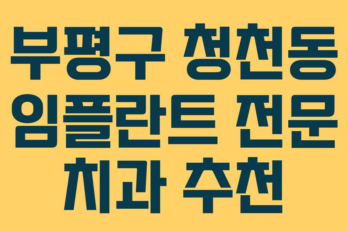 부평구 청천동에서 신뢰할 수 있는 임플란트 전문 치과로는 서울하늘 치과 의원, 연세고운미소 치과 의원 등이 있습니다.