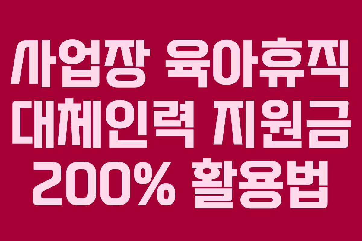 이 제도는 중소기업에게 특히 유용하며, 직원이 육아휴직을 사용하는 동안 인건비 부담을 덜 수 있는 좋은 기회입니다.