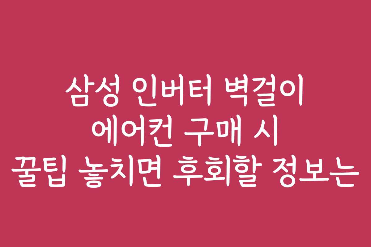 삼성 인버터 벽걸이 에어컨 구매 시 꼭 알아야 할 꿀팁과 후회할 정보