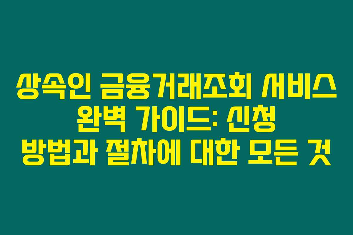상속인 금융거래조회 서비스 완벽 가이드: 신청 방법과 절차에 대한 모든 것