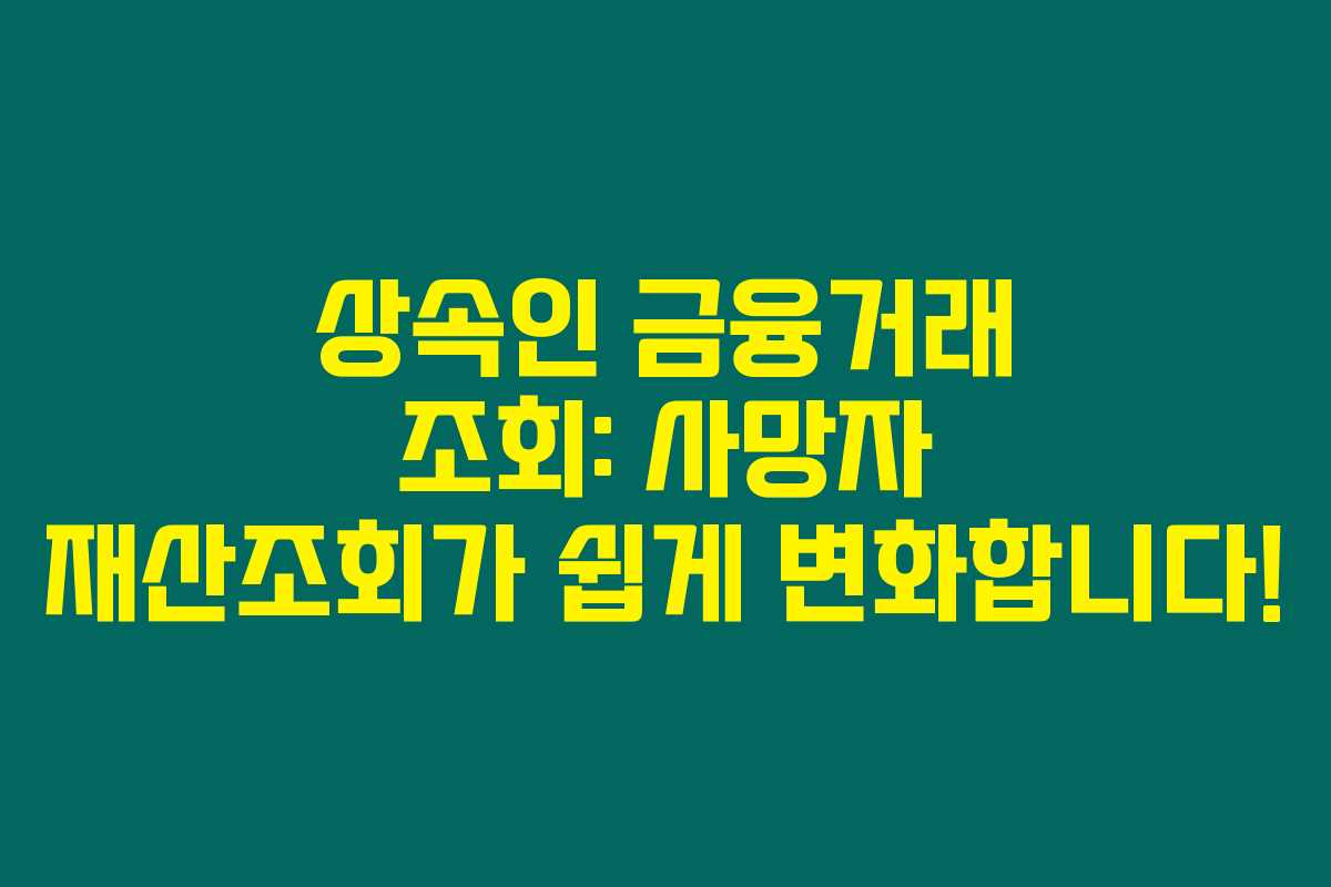 상속인 금융거래 조회 서비스는 사망자의 재산 조회를 원스톱으로 가능하게 하는 시스템입니다. 이는 사망 신고와 동시에 금융기관의 자산을 한 번에 조회할 수 있어 상속인에게 큰 도움이 됩니다.