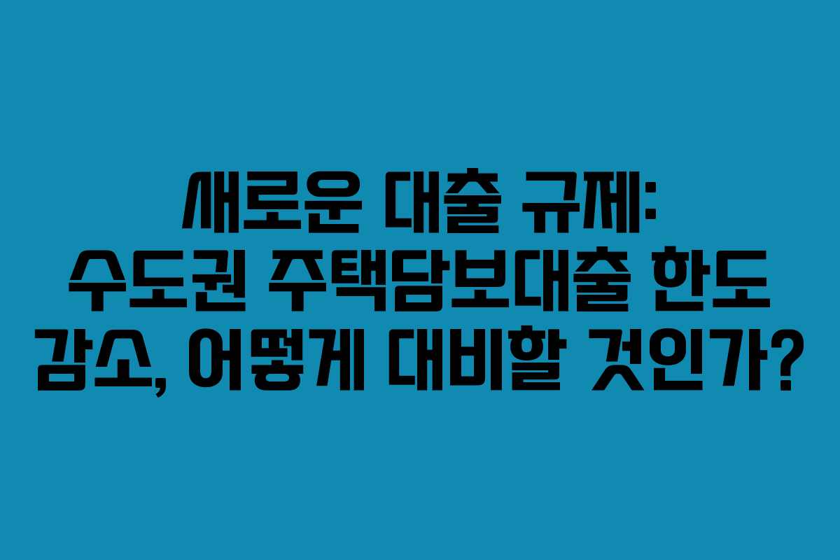 새로운 대출 규제: 수도권 주택담보대출 한도 감소, 어떻게 대비할 것인가?
