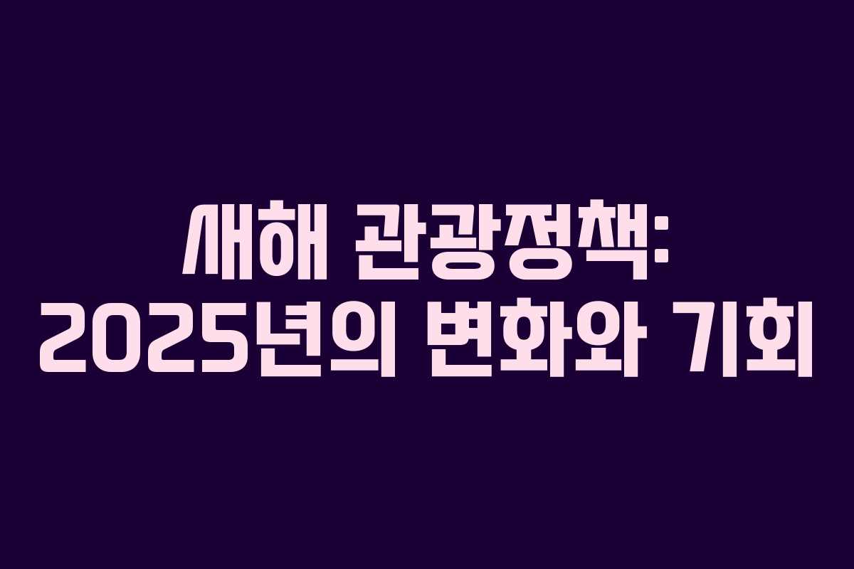 2025년을 맞아 다양한 관광정책이 추진될 예정입니다. 이번 정책들은 새로운 관광지 개발, 교통 인프라 확충, 지역 문화 활성화 등을 포함하여 국민 여러분이 더욱 풍요롭게 관광을 즐길 수 있도록 할 계획입니다.