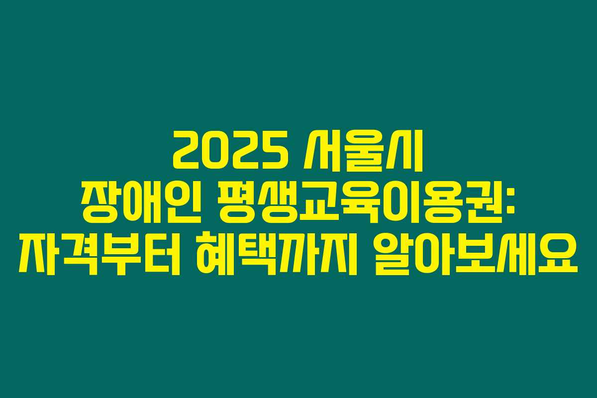제가 직접 리서치해본 바로는 서울시는 2025년에 장애인에게 제공하는 평생교육이용권으로 많은 변화와 혜택을 제공한다고 해요. 장애인들에게 평생교육의 기회를 확대하고, 자립 능력과 사회 참여를 증진시키기 위한 훌륭한 정책입니다. 아래를 읽어보시면 신청 대상, 기간, 방법 및 혜택에 대한 구체적인 정보를 확인할 수 있습니다.