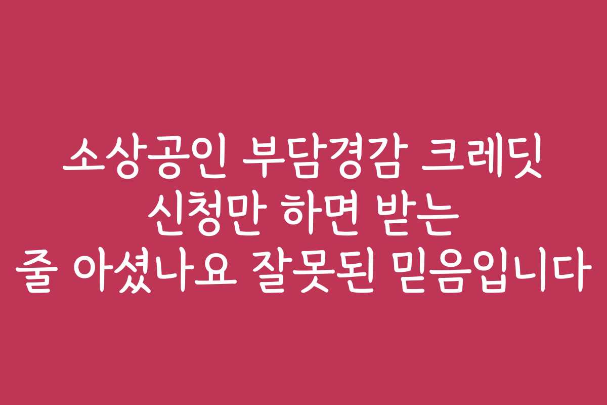소상공인 부담경감 크레딧 신청만으로 크레딧을 받을 수 있다고 믿는 것은 큰 착각입니다. 이 글에서는 소상공인 부담경감 크레딧의 진실을 파헤치고, 올바른 신청 정보를 안내드립니다. 어떻게 하면 손쉽게 지원을 받을 수 있을지 알아보세요!