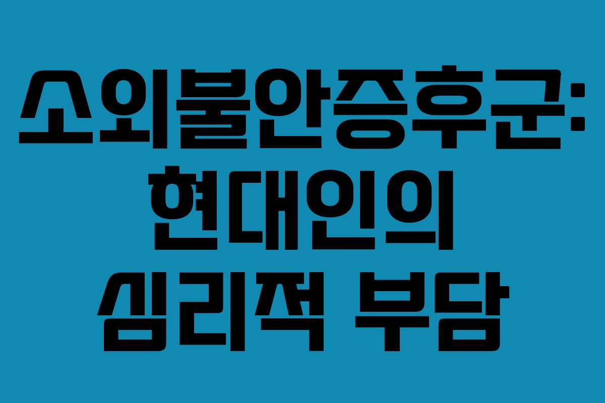 소외불안증후군은 현대 사회에서 흔히 겪는 심리적 문제입니다. 이를 이해하고 극복하기 위한 노력이 필요합니다.