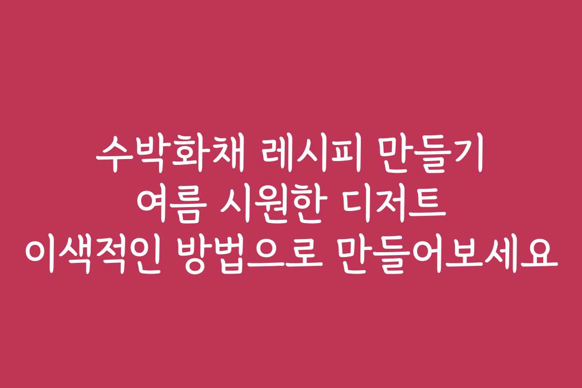 여름이 오면 시원한 디저트가 특히 그리워지죠. 그중에서도 수박화채는 더운 날씨에 가장 잘 어울리는 디저트입니다. 하지만 많은 분들이 평범한 레시피에만 의존하고 있지 않나요? 이번에는 이색적인 방법으로 수박화채를 만들어보는 법을 소개하겠습니다. 아래를 읽어보시면 여름을 더욱 특별하게 즐길 수 있는 레시피를 알게 되실 거예요!