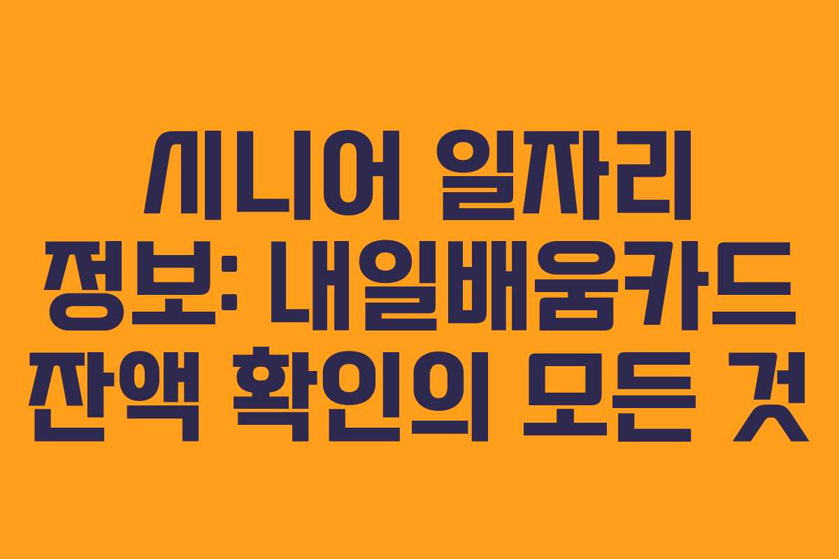 시니어 일자리 정보: 내일배움카드 잔액 확인의 모든 것