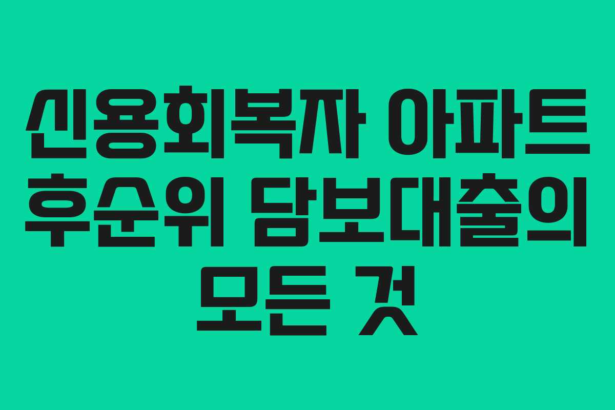 신용회복자도 아파트 후순위 담보대출을 받을 수 있으나, 각 금융사의 조건을 꼼꼼히 확인해야 합니다.