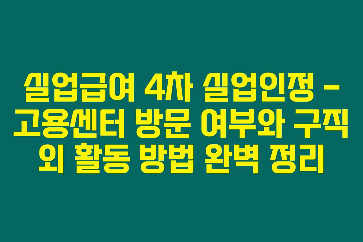 4차 실업인정은 고용센터에 방문하거나 비대면으로 신청할 수 있어요. 필요한 서류와 구직 외 활동을 준비한 후 신청하면 됩니다.