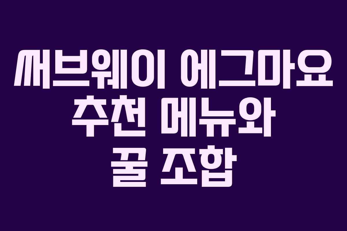 이렇게 써브웨이 에그마요의 추천 메뉴와 조합을 알아보았습니다. 다양한 조합을 시도해보며 나만의 최애 메뉴를 찾아보세요!
