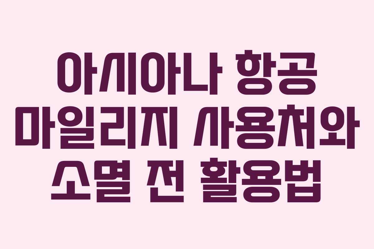아시아나 항공 마일리지 사용처와 소멸 전 활용법