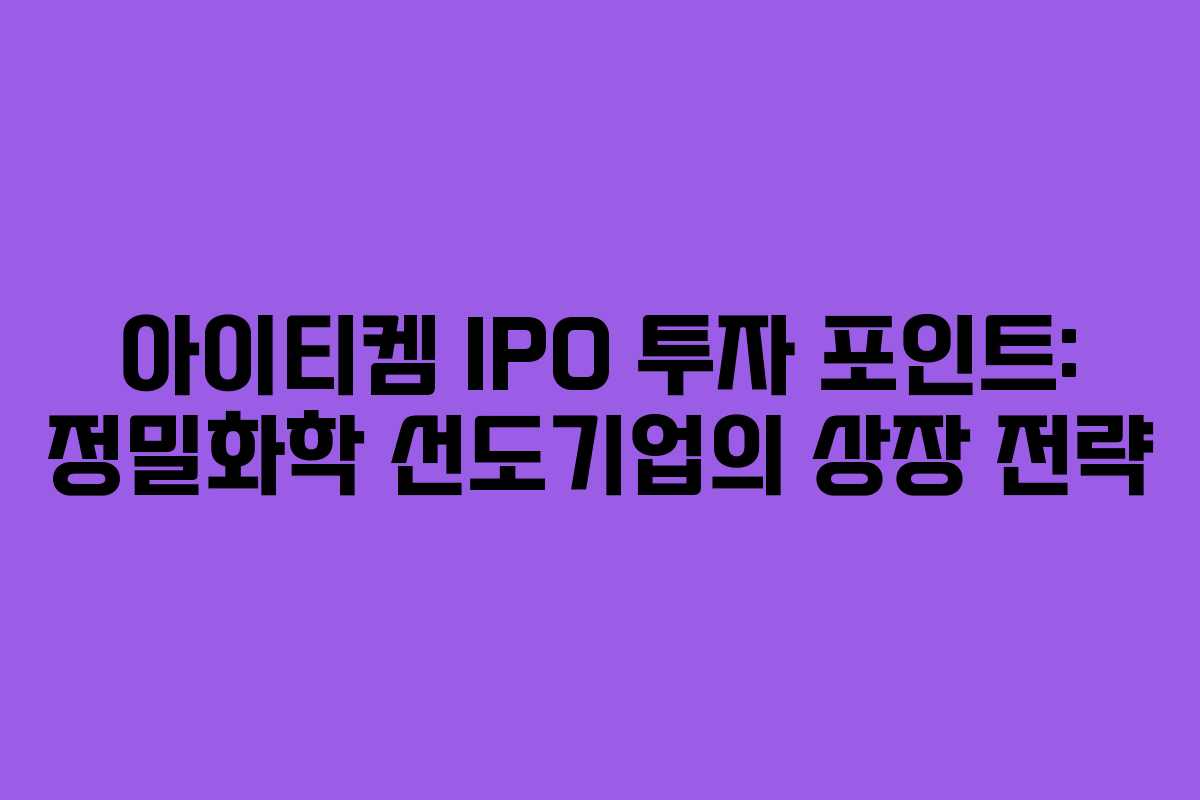 아래를 읽어보시면 아이티켐의 사업 포트폴리오와 핵심 기술, 공모 구조, 재무 흐름 및 경쟁 포지션을 한눈에 파악하고, IPO 투자 판단에 필요한 핵심 포인트를 제시합니다.
