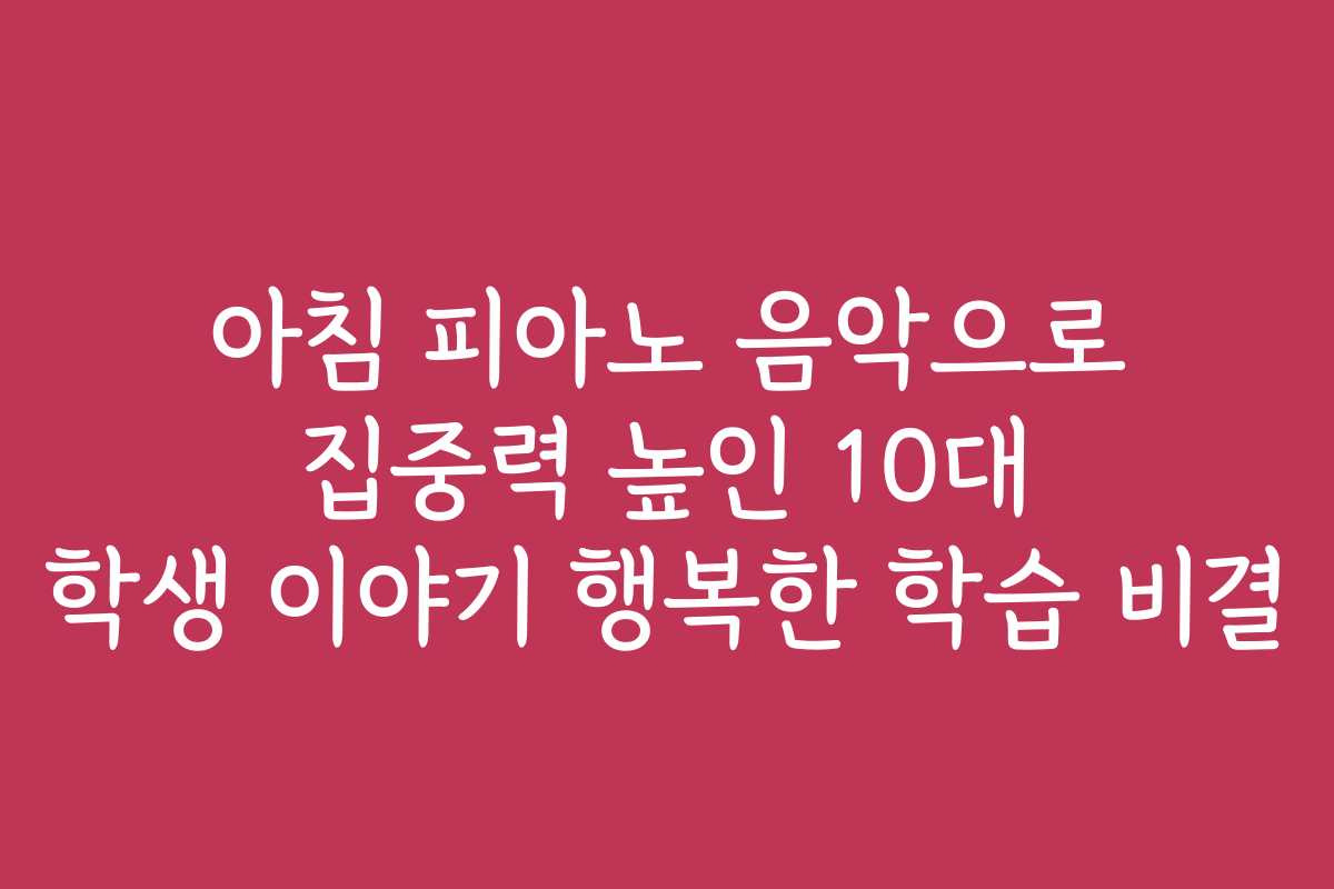 아침 피아노 음악으로 집중력 높인 10대 학생 이야기 행복한 학습 비결