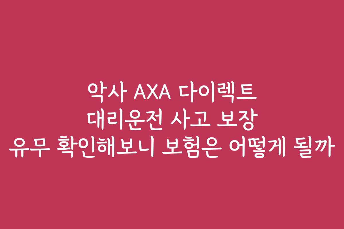 대리운전 사고에 대한 우려가 많으신가요? 많은 분들이 대리운전을 이용하더라도 사고가 발생할 경우 어떻게 처리할지 고민하고 있습니다. 이 글에서 ‘악사 AXA 다이렉트 대리운전 사고 보장 유무’에 대한 실질적인 정보를 제공하여 고민을 해결해보겠습니다.
