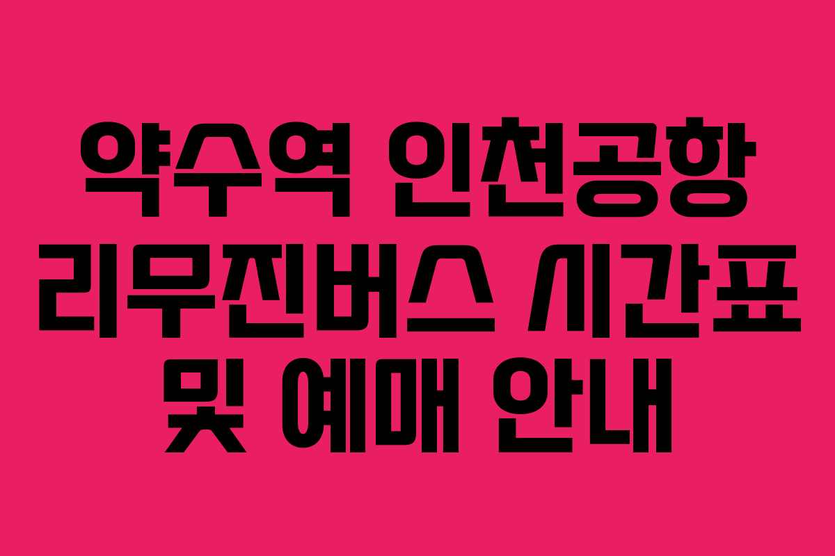 약수역 인천공항 리무진버스 시간표 및 예매 안내