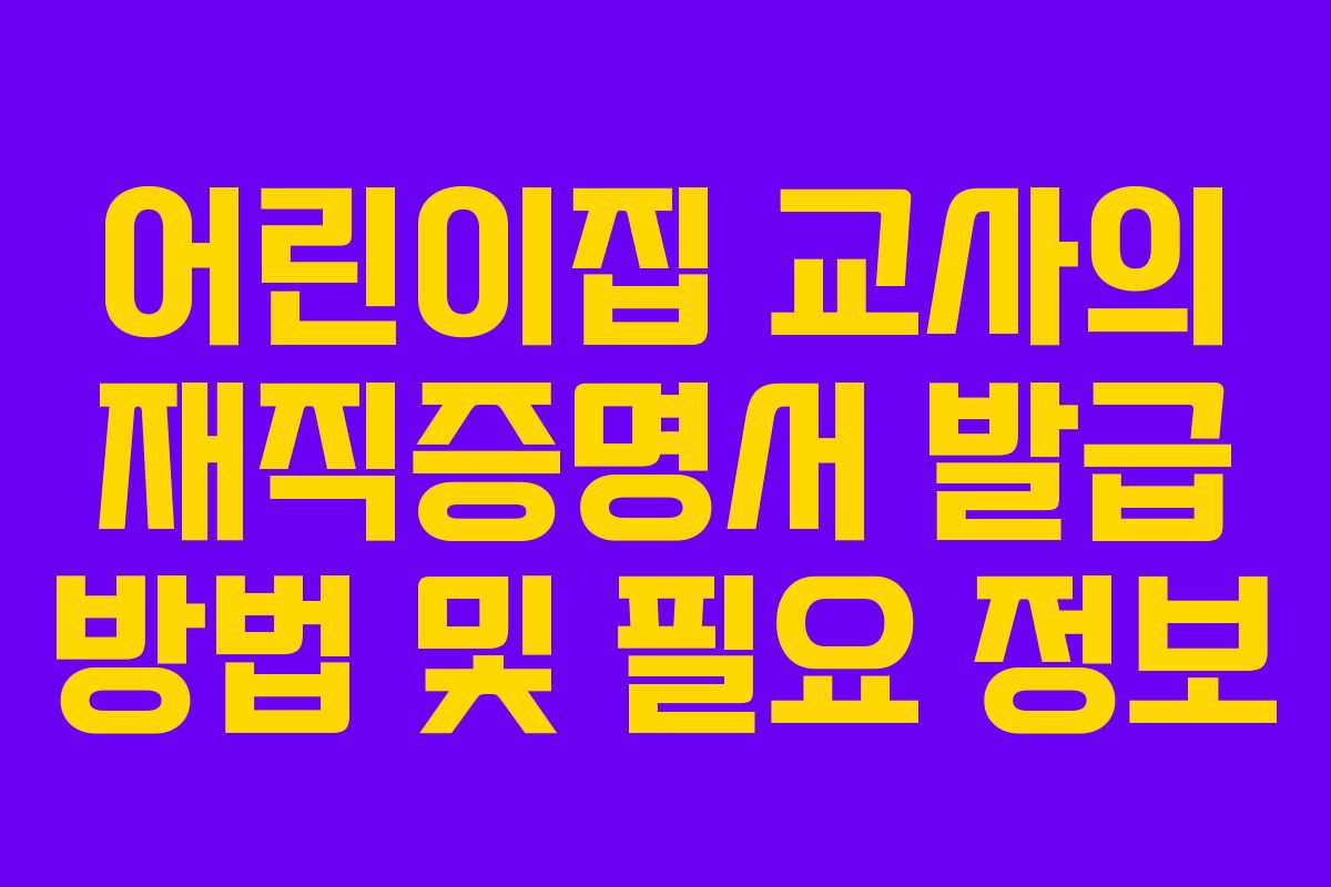 어린이집 교사로서 재직증명서를 발급받는 과정은 비교적 간단하지만, 필요한 정보와 절차를 사전에 잘 이해하고 준비하는 것이 중요합니다. 이 글에서는 재직증명서의 정의, 발급 절차, 필요한 서류와 주의사항, 그리고 자주 묻는 질문을 통해 여러분에게 유용한 정보를 제공하겠습니다.